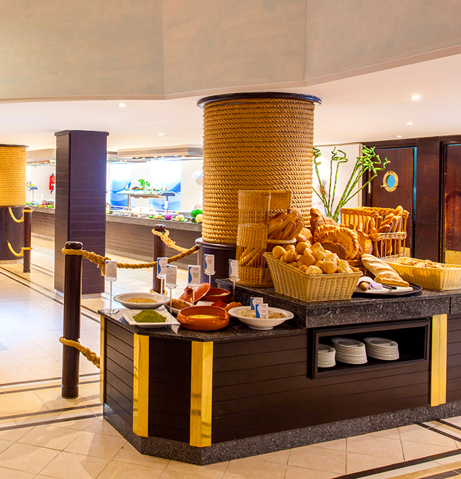 Open every day and for every meal, the restaurant offers a wide choice of delicious buffets. Thematic cuisine and vegetarian dishes are at your disposal. Also discover the authentic Tunisian cuisine and take a seat in the dining room or on the terrace with sea view.